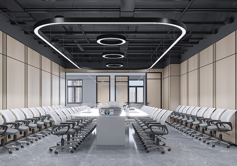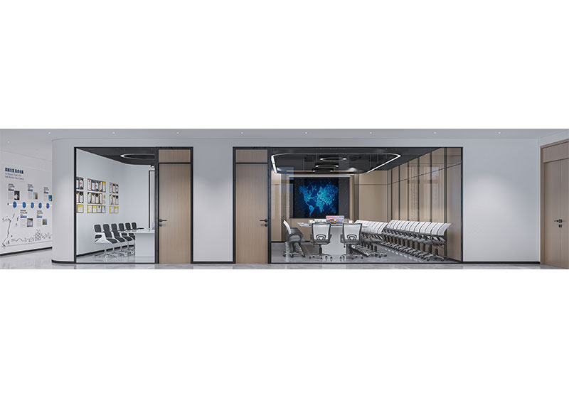 作為濟(jì)南辦公室裝修中產(chǎn)業(yè)園區(qū)辦公空間的代表,聯(lián)東 U 谷以科技為核心,弧形墻體柔化空間線條,淺灰大理石地面搭配嵌入式燈光營(yíng)造簡(jiǎn)潔質(zhì)感;一側(cè)展示墻整合品牌文化與產(chǎn)品信息,另一側(cè)玻璃隔斷的會(huì)議室嵌入科技感燈帶,適配企業(yè)產(chǎn)品展示與商務(wù)洽談,是濟(jì)南辦公室裝修中 “產(chǎn)業(yè)屬性 + 功能展示” 融合的優(yōu)質(zhì)案例。